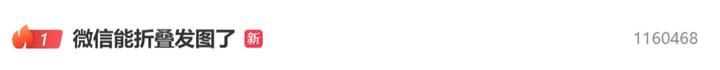 截至发稿,“微信能折叠发图了”的词条登上微博热搜榜首位,且关注度持续提升。