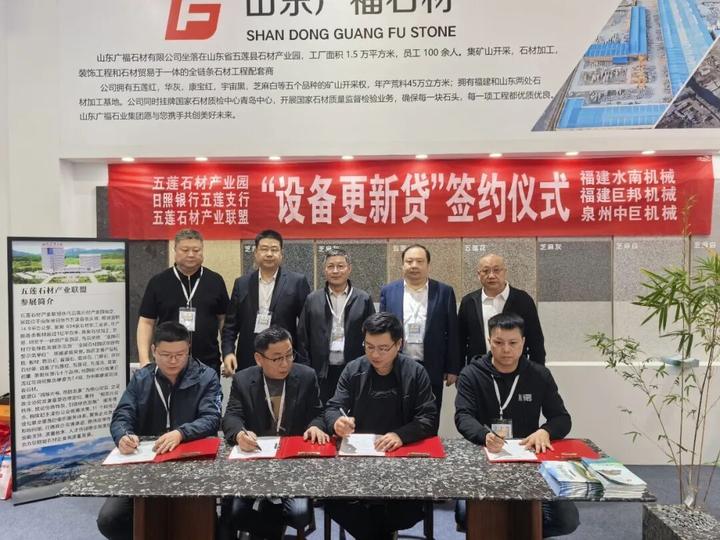 展会期间,五莲展团接连达成重磅合作,首日便联合金融机构与多家企业签订《设备贷战略合作协议》,为石材企业设备升级、智造转型打通专属金融渠道。次日赴泉州开展考察签约,与福建荣发石业签订《石材雕刻产业协同创新战略合作协议》,推动本地雕刻工艺向精细化、艺术化升级,拓宽产业发展赛道。期间,展团同步走进惠安雕艺博物馆及多家行业标杆企业,学习先进生产工艺等成熟经验,深度参与行业前沿论坛,精准把握产业发展风口。