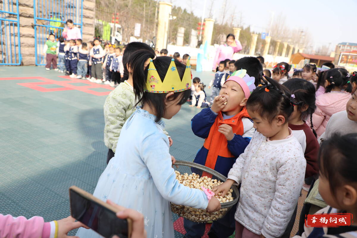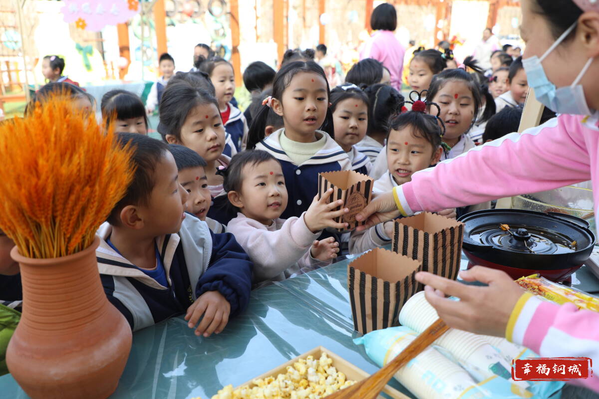 最受孩子们欢迎的当数美食体验环节。老师们带领孩子们炒豆子、做爆米花,清脆的噼啪声伴随着孩子们的笑声,寓意“金豆开花”。