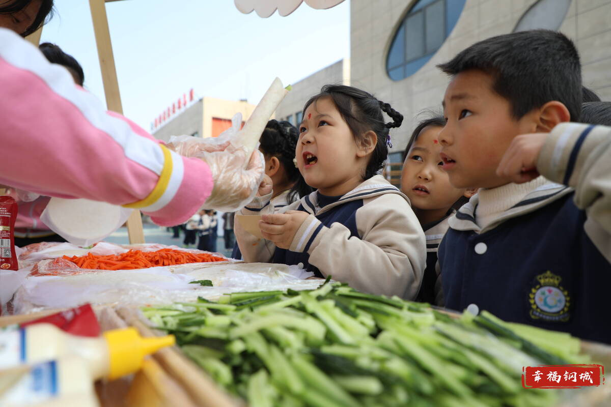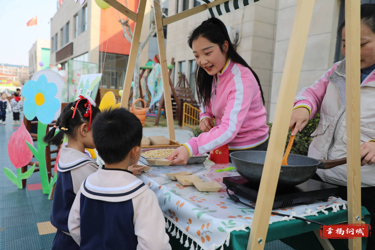在实验幼儿园广场上,孩子们的嬉闹声、老师们的讲解声、炒豆子的噼啪声交织在一起,一场充满烟火气的民俗体验活动正式拉开帷幕。