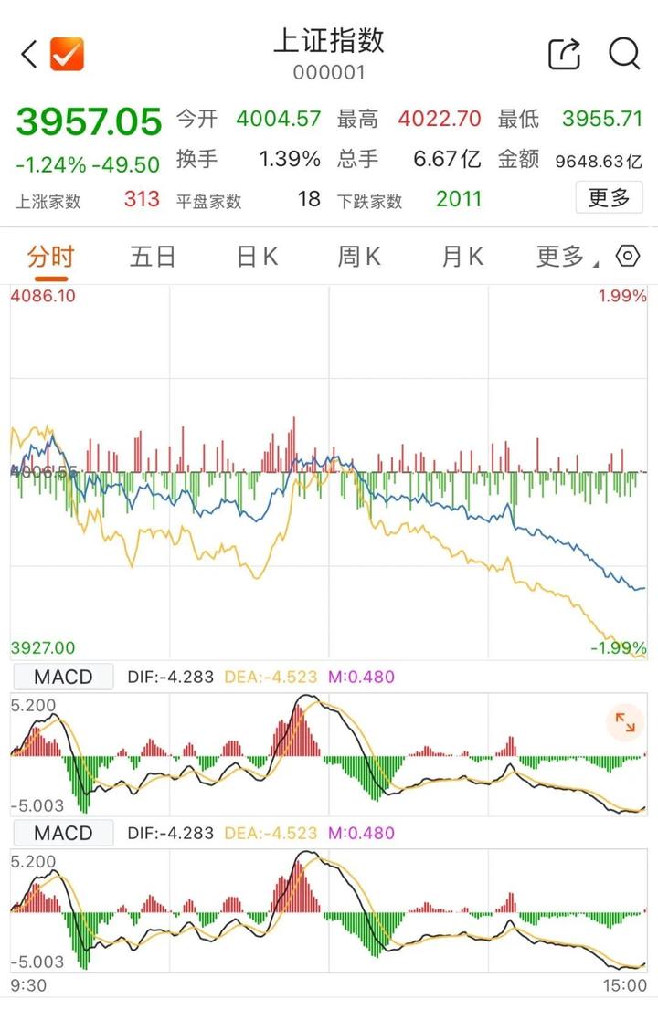 今日上证指数开盘即承压,以4004.57点开盘,较前一交易日收盘价4006.55点微跌,随后盘中呈现“冲高回落、震荡下行”的走势。早盘沪指曾短暂冲高至4022.70点,随后快速跳水,跌破4000点整数关口,盘中最低下探至3955.71点,意味着该缺口被完全回补,且呈现有效击穿的态势。