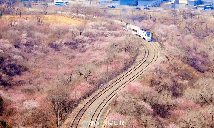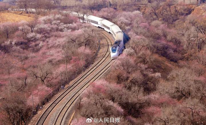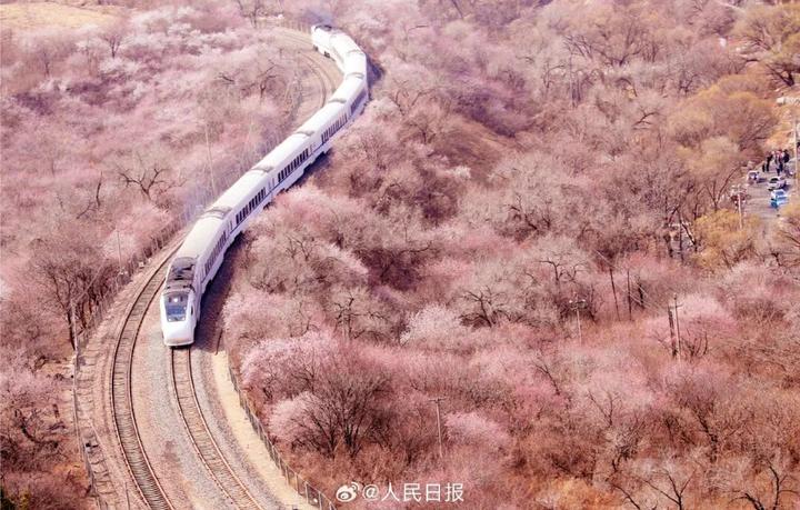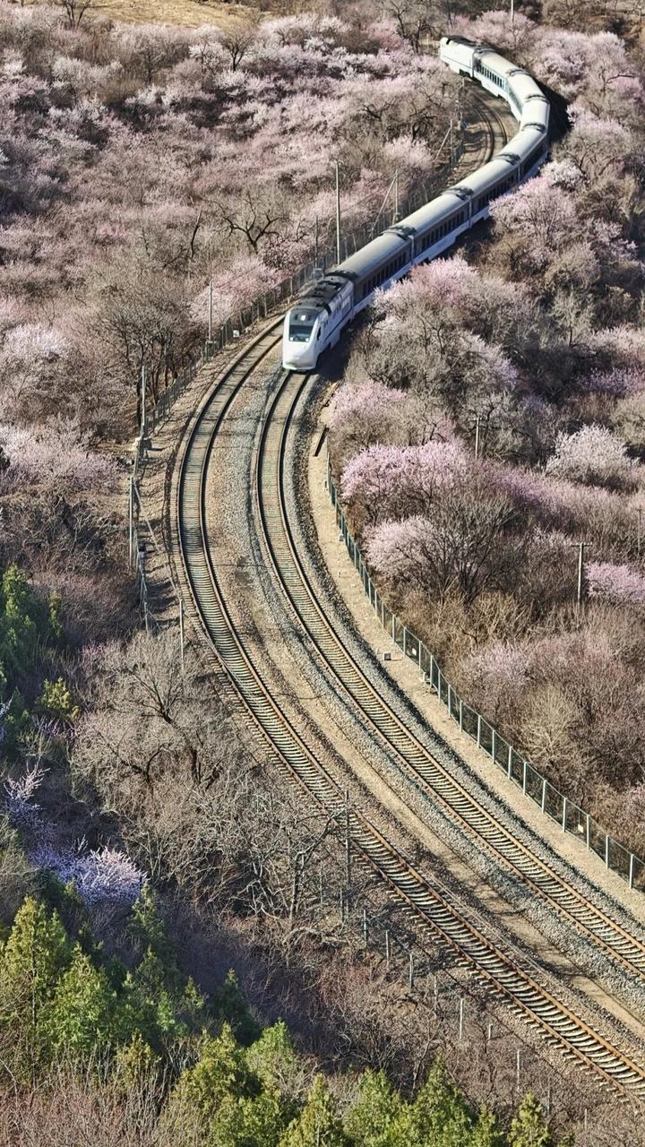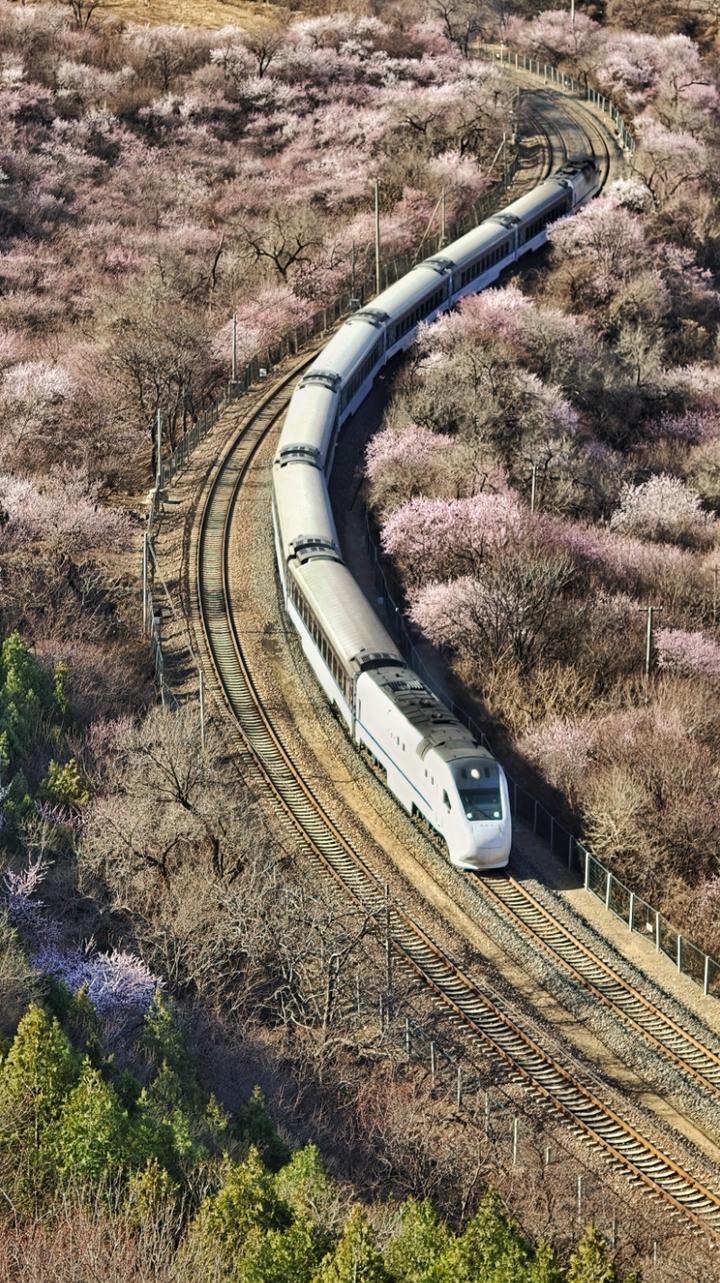 市郊铁路S2线被誉为“开往春天的列车”。3月下旬至4月中旬,S2线沿途将迎来山花盛放的高峰期。列车穿行于粉白交织的花海与巍峨长城之间,宛如驶入漫画世界,成为京津冀地区最热门的春日打卡点。
