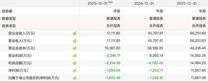 近三年财务数据显示:*ST集友2023年归母净利润约为1.17亿元,2024年为亏损7245.81万元,2025年为亏损1820.48万元。