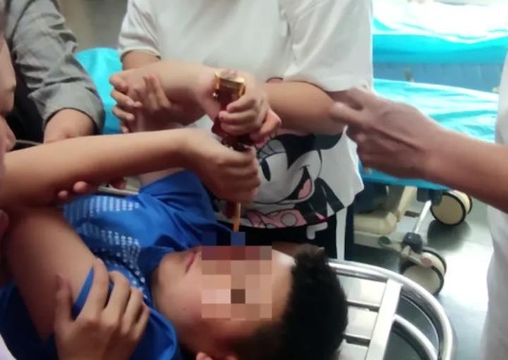 男孩随即被推进手术室接受治疗
