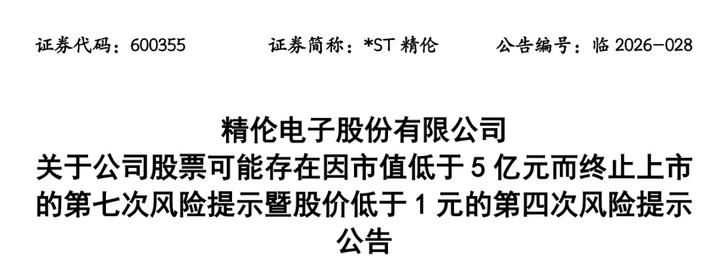 除市值退市风险外,*ST精伦此前还面临另外两项退市风险。3月27日,*ST精伦股票收盘价为0.75元,已连续12个交易日低于1元,若连续20个交易日股票收盘价均低于1元,则将面临1元面值退市。同时,公司预计2025年度净利润为负值,且扣除与主营业务无关的业务收入和不具备商业实质的收入后的营业收入低于3亿元,年报披露后若数据与上述一致,则公司股票将被终止上市。