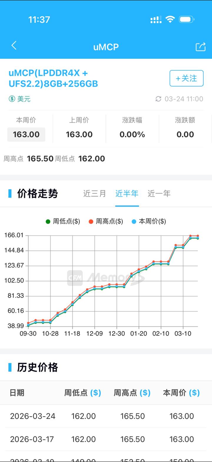 存储芯片的新货报价趋势。 (受访者供图)