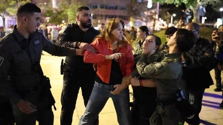 以色列警方28日在特拉维夫逮捕一名抗议者。图源:外媒