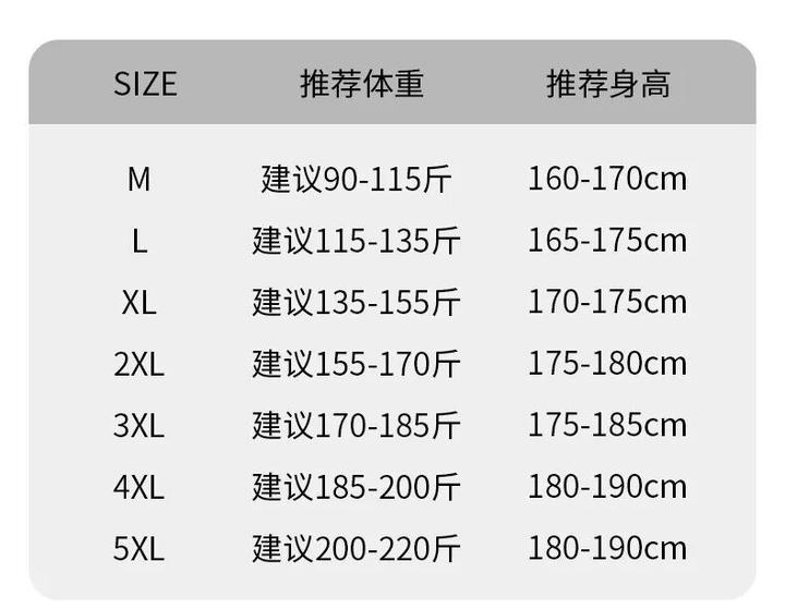 M-5XL的尺码,可以随意选择,不清楚的亲也可以对照以下尺码表哦~