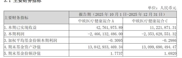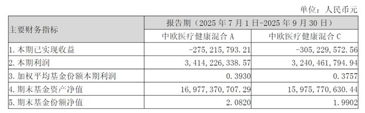 根据中欧医疗健康混合基金定期报告,2025年四季度,该基金规模大幅缩水。2025年三季度末,该基金规模接近330亿元,到了2025年底,基金缩水至不足270亿元。