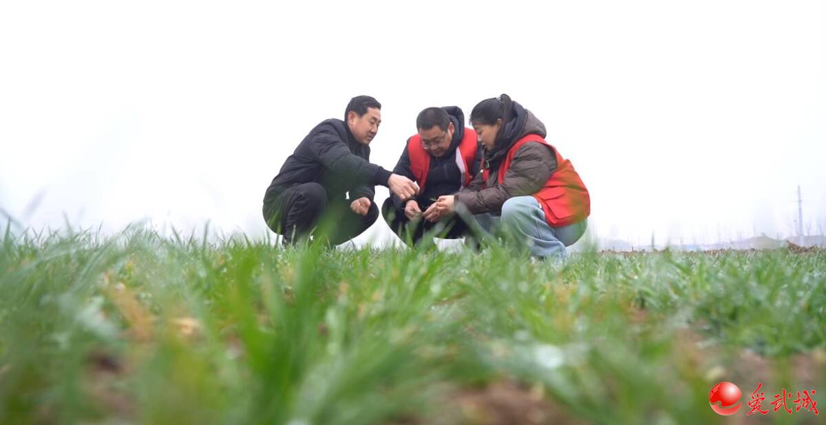 卫星“问诊”之后,巡田队员与农户任庆强一同前往地块实地核查。现场发现,这块麦田不仅苗情偏弱,部分麦苗还出现了轻微病害。结合土壤墒情、苗情实际,工作人员制定了“借墒追肥+后期防病”的个性化管护方案,并立即调度无人机开展施肥作业。