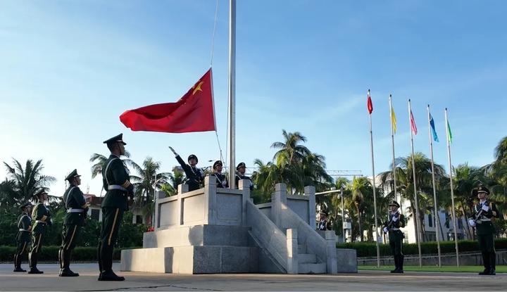 “我们万众一心,冒着敌人的炮火,前进……”25下、26下、27下,李泽锋缓缓拉动旗绳。当最后一个音符戛然而止,国旗升至旗杆顶端,金色的阳光洒在飘扬的旗帜上,南海上空,那抹中国红愈发鲜艳夺目。