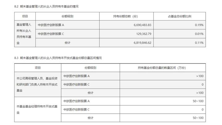 中欧基金内部员工也小幅增持了中欧医疗创新股票基金。截至2025年底,中欧基金内部员工持有中欧医疗创新股票基金702.36万份,而在2025年6月底持有份额为681.98万份。