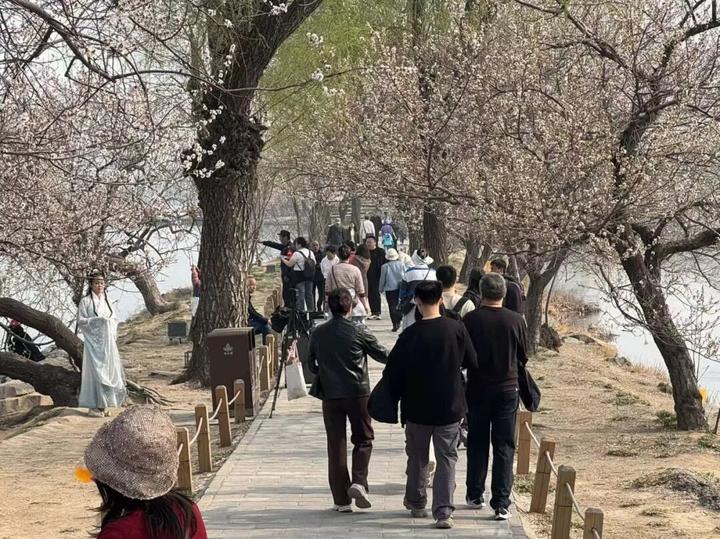颐和园西堤近期迎来很多赏花拍照的游客,然而不少商拍团队“占景占道”,使得其他游客无法尽情欣赏美景,恼火又无奈。
