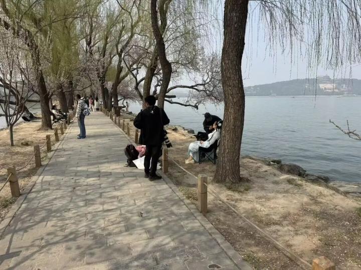 近日,北京晚报记者沿西堤镜桥向南行,在最经典的“桃柳夹岸”路段,看到树下被分割成若干“私人领地”。自镜桥至京密引水渠约一公里的道路两侧,分布着6个拍摄团队。“我们店就在颐和园门外,拍摄半个小时带妆造是500元。”一名摄影师告诉记者。在练桥旁,一名摄影师端着相机站在道路西侧,模特在道路东侧摆好造型,拍起来就没完,游客只能在拍摄间隙快速穿过。