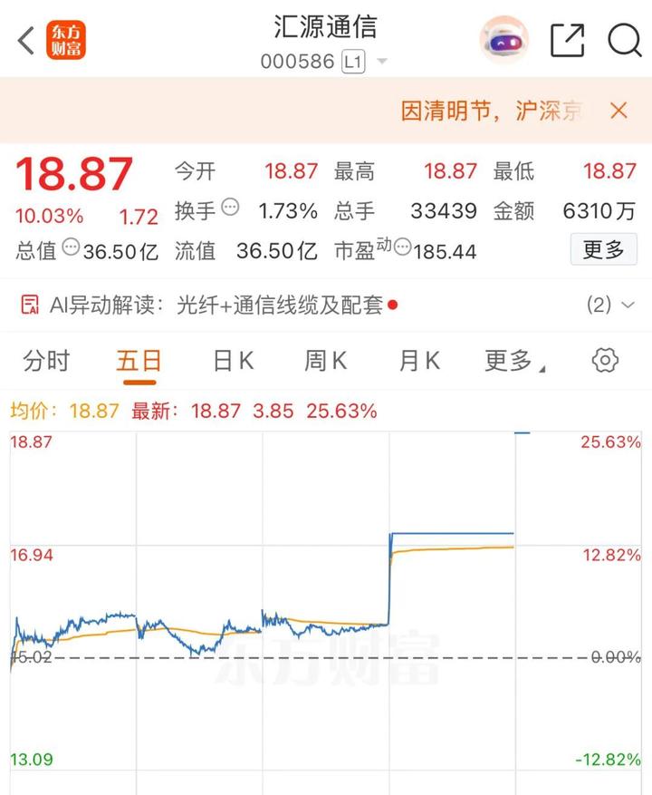此外,光纤概念延续强势。汇源通信(000586)“一字”涨停,录得二连板,亨通光电涨超9%,长飞光纤一度涨逾6%,续创历史新高,(此前报道2700亿市值龙头冲击涨停)腾景科技、长光华芯、光迅科技等跟涨。