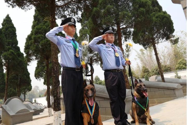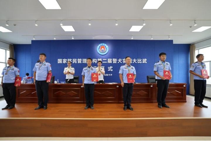 周州在国家移民管理机构第二届警犬实战大比武中获奖(右三)
