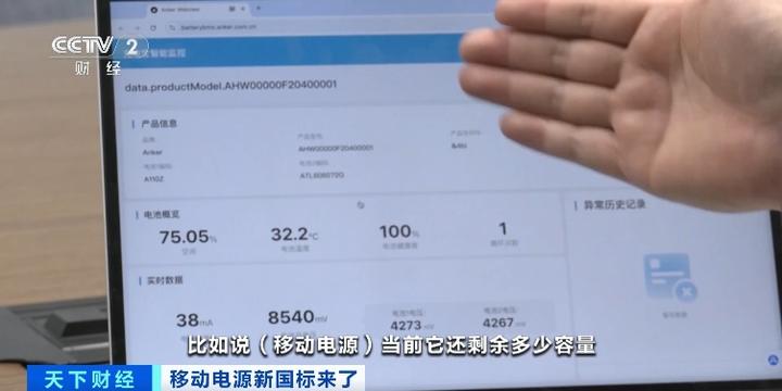 安克创新充电研发负责人 肖松:比如,移动电源当前还剩余多少容量,温度、电池的健康度究竟是多少,还有非常重要的循环次数,新国标也会给大家一个提示。