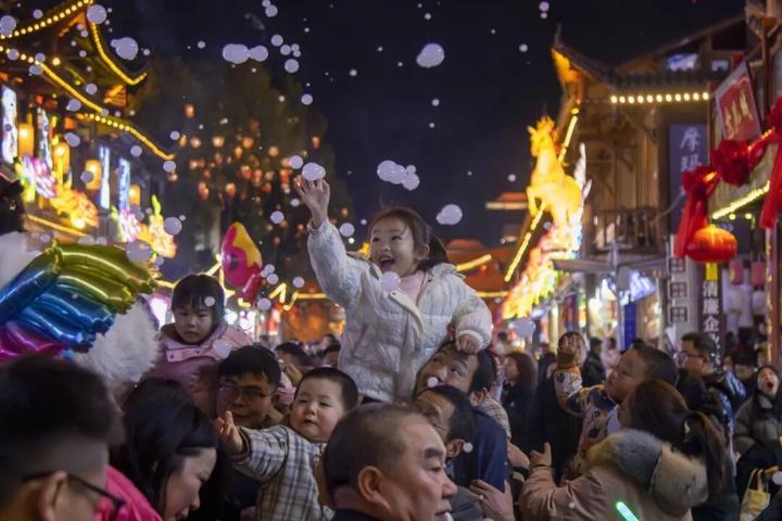 2026年2月13日,湖北省恩施女儿城步行街区人流如织。谭华摄(新华社发)