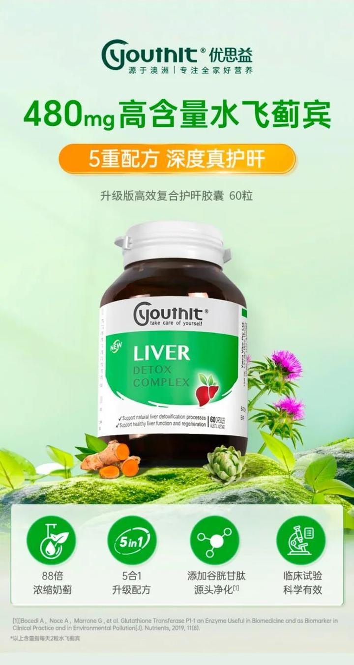 在国内各大电商平台的详情页与宣传海报上,优思益大肆标榜“480mg足量水飞蓟‘宾’”。这种极具视觉冲击力的字眼,极易让消费者误以为单粒胶囊的有效成分含量极高。但只有仔细看海报角落,才会发现一行极其隐蔽的小字,标明所谓的480mg实为每日摄入总量,即每天两粒的总和。