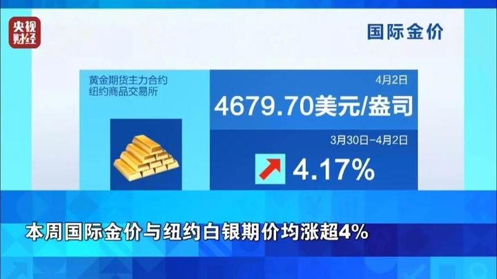 本周国际金价与纽约白银期价均涨超4%
