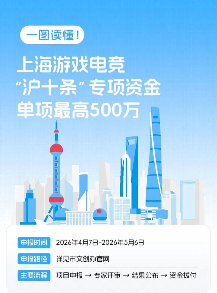 近日,上海正式印发《上海市关于支持游戏电竞产业发展的若干举措》(简称“游戏沪十条”),围绕产业集聚、出海平台、科技赋能、电竞能级等十大关键环节集中发力。