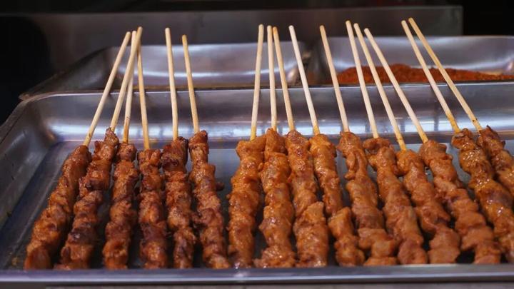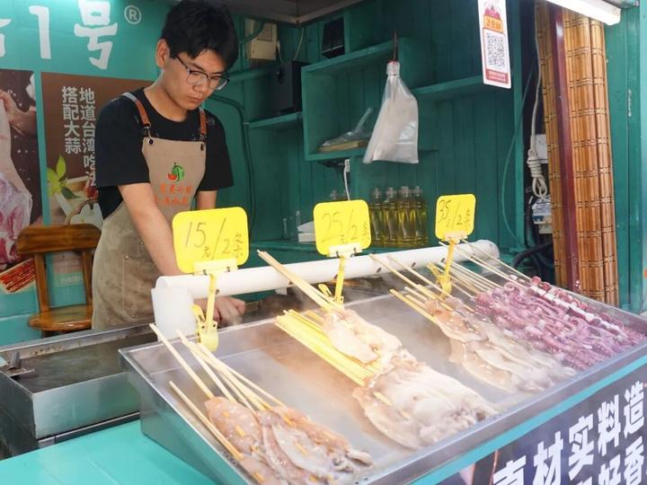 现烤的鱿鱼“滋啦”作响