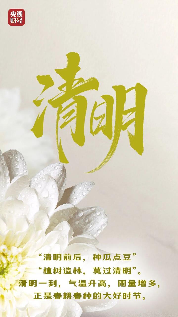 清明,古时也叫寒食节、三月节,是辞旧迎新的节气。此时气温回升,和畅的春风被称为“清明风”。“万物生长此时,皆清洁而明净。故谓之清明。”清明节后雨水增多,万物由阴转阳,吐故纳新,一派春和景明之象。
