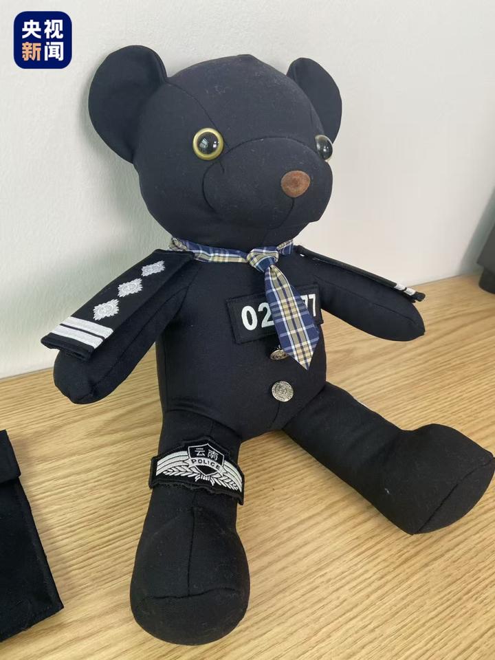 除了这位辅警父亲,喻洁还曾为一名因公殉职的禁毒警察的亲人,缝制过专属的思念熊。她将他生前的警号和警徽都缝在了小熊身上,尽最大努力保留了原来的印记。