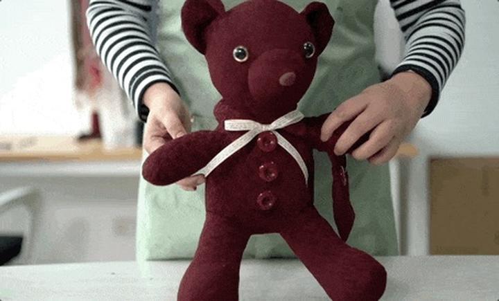 她帮助陌生人,将逝去亲人的衣物,手工缝制成独一无二的思念熊,以寄托无尽的思念。