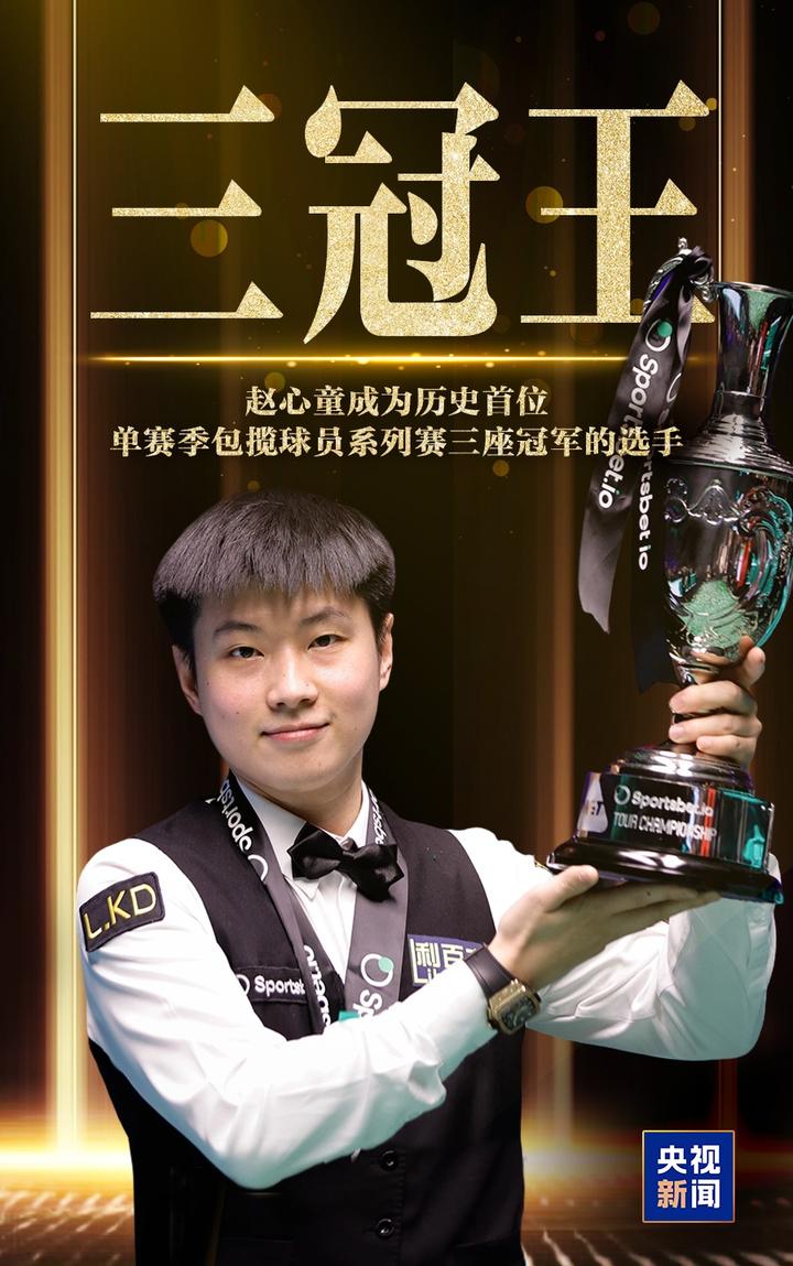 凭借这场胜利,赵心童成为历史上首位单赛季包揽球员系列赛(世界大奖赛、球员锦标赛、巡回锦标赛)三座冠军的选手。