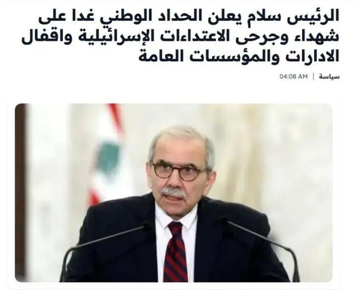 黎巴嫩国家通讯社称,黎巴嫩总理纳瓦夫·萨拉姆在一份声明中宣布,4月9日为全国哀悼日,悼念在以色列空袭中遇难的无辜平民。届时,所有公共行政部门、机构和市政部门都将关闭,并降半旗致哀。他还向遇难者家属表示慰问。