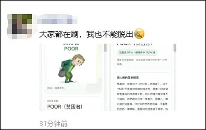 据了解,该测试以MBTI为灵感框架,因其内容具有荒诞性与网络传播度引发社交狂欢,但本质是纯娱乐产物,与MBTI的科学性存在根本差异。