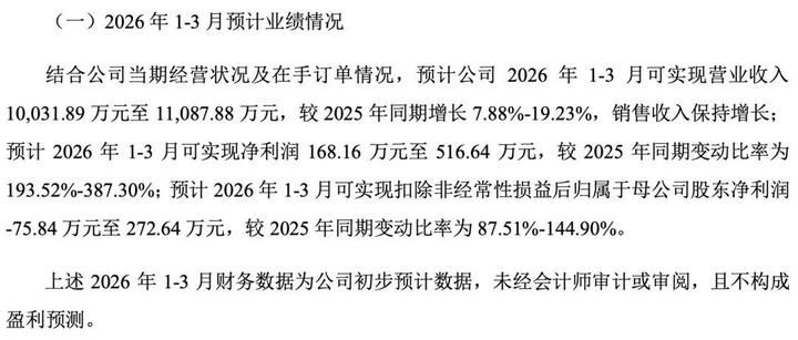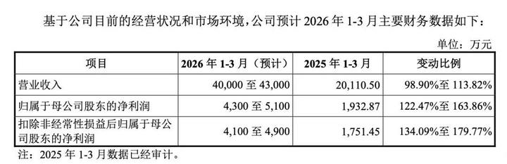联讯仪器招股书称,预计公司2026年一季度实现净利润4300万元至5100万元,同比增长122.47%至163.86%。