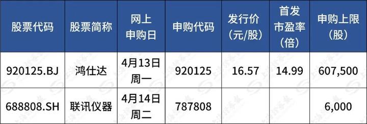 据目前安排,若无变化,下周(4月13日至17日)有2只新股可申购,分别为科创板1只和北交所1只。
