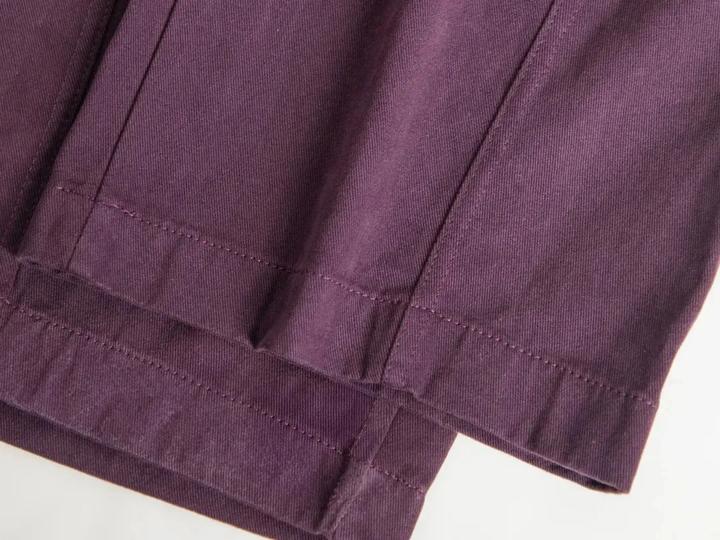 水洗工艺使面料在保持棉的透气与吸湿性同时,更为柔软且不易起皱。体感舒适,春秋季穿不闷热,夏季在空调房中不冰腿。