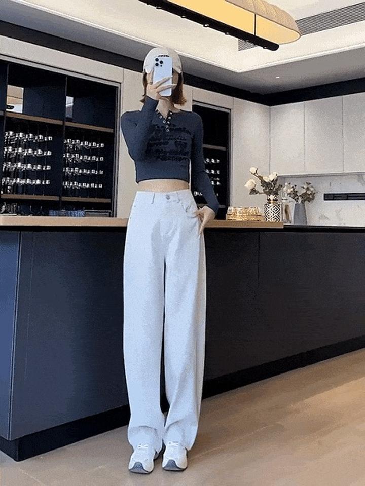 这款牛仔裤透气且不易贴肤,微阔的版型,给你“走路带风”的效果。