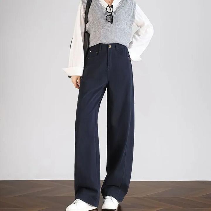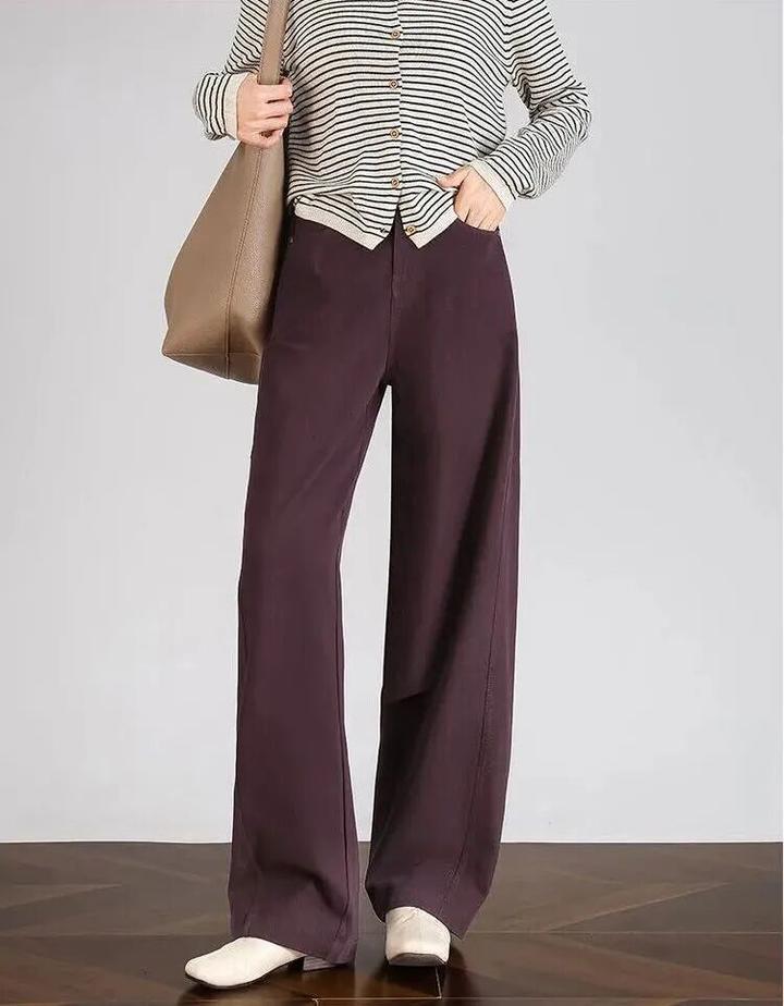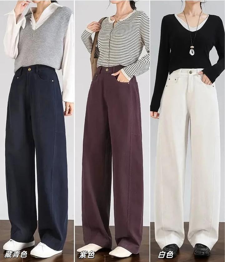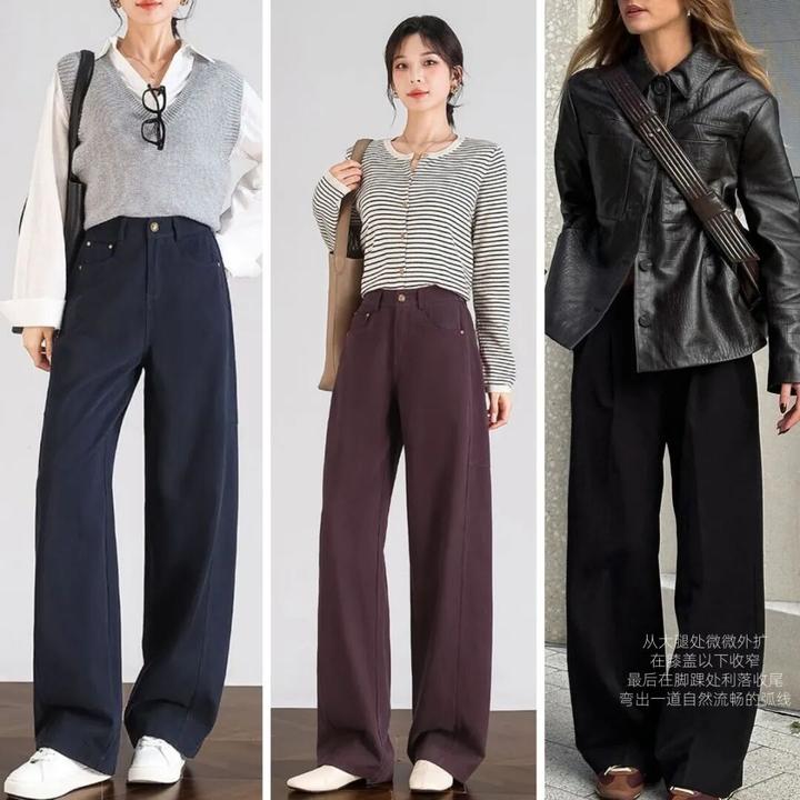 这款裤子共有藏青、紫色、白色3个颜色,一裤能穿四季,适合多种风格的上装。通勤、约会、商务合作等场合,都能穿它。
