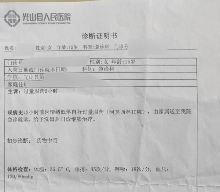 王健提供诊断证明书并称,事发一个月后,女儿出现抑郁症状加重并服药自杀,所幸发现及时。
