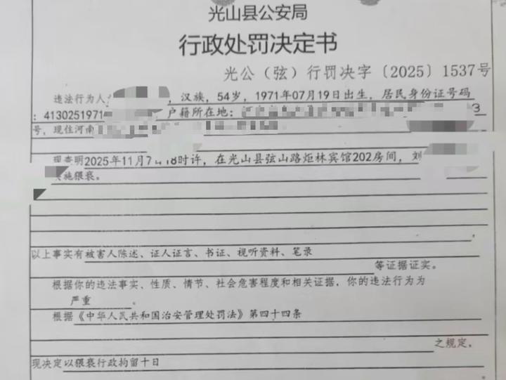 事发后,光山县公安局以猥亵对刘某某作出行政拘留十日的处罚。