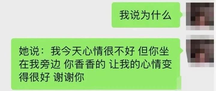 “我今天心情不好,但你坐我旁边,香香的,谢谢你~”