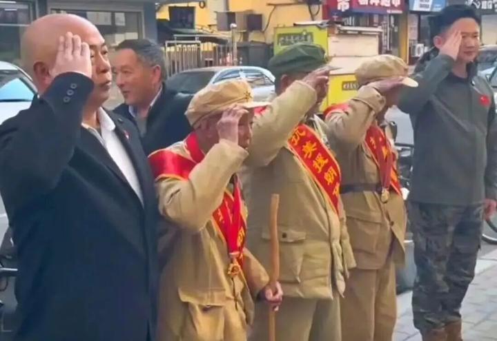 4月7日8点左右,十几人一起到辽宁丹东“麦香包子铺”就餐,其中,有三位身着中国人民志愿军军服的老人格外引人注目,红色绶带斜挎在身,上面印着“抗美援朝 保家卫国”八个大字。