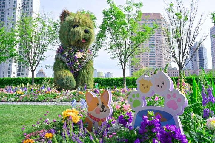 “潦草小狗”之外,“六园九景”中还有不少别具匠心的设计。“空中石库门”悬浮于城市天桥之上,以百年石库门建筑为骨架,被层层繁花与藤蔓包裹。“梦幻花谷”以《戴珍珠耳环的少女》经典意象为灵感,将柔雾质感与立体花艺相融合,串联花展LOGO打造立体花境。“芳香康健体验花园”以玫瑰、白玉兰等特色芳香植物为主要设计元素,以植物、中草药、健康等多项长期科学研究和科研成果为基础,将中国传统健康理念与现代设计手法相融合。