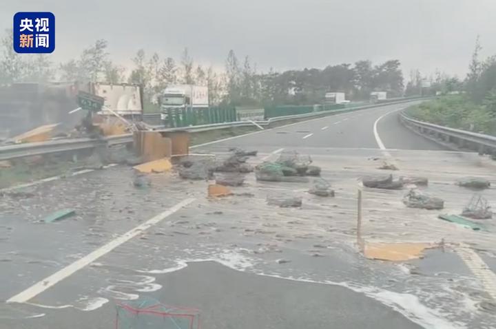 △唐植勇驾驶途中看到车辆侧翻,货物散落一地。