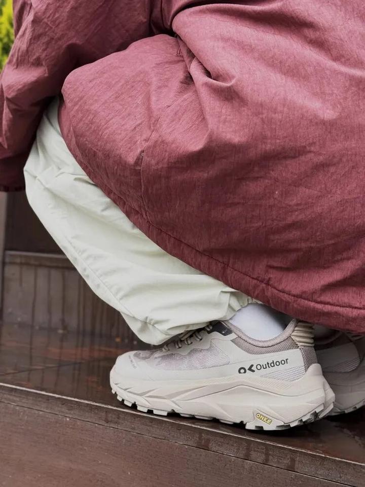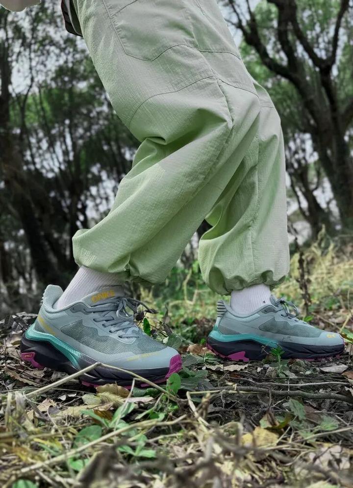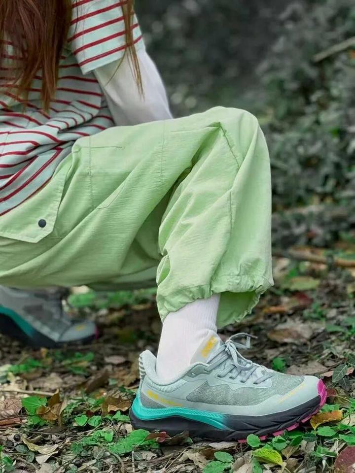 这个颜色很特别,它像是雨后苔藓或植物茎秆的色调,带一点灰度,视觉上柔和舒适。鞋底有小面积亮色点缀,增加活力感。