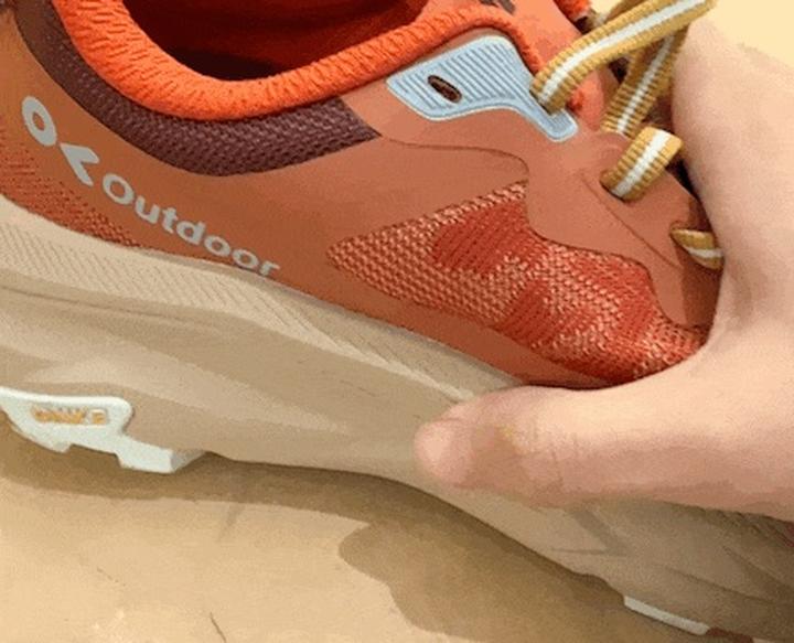 先来看看鞋底配置:采用高弹EVA二次发泡减震中底,搭配全地形复合橡胶大底。