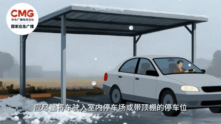 驾车出行如遇冰雹,应尽量将车驶入带顶棚的停车位,不要将车停在树下,躲避时应远离照明线路、高压电线和变压器,防止触电。