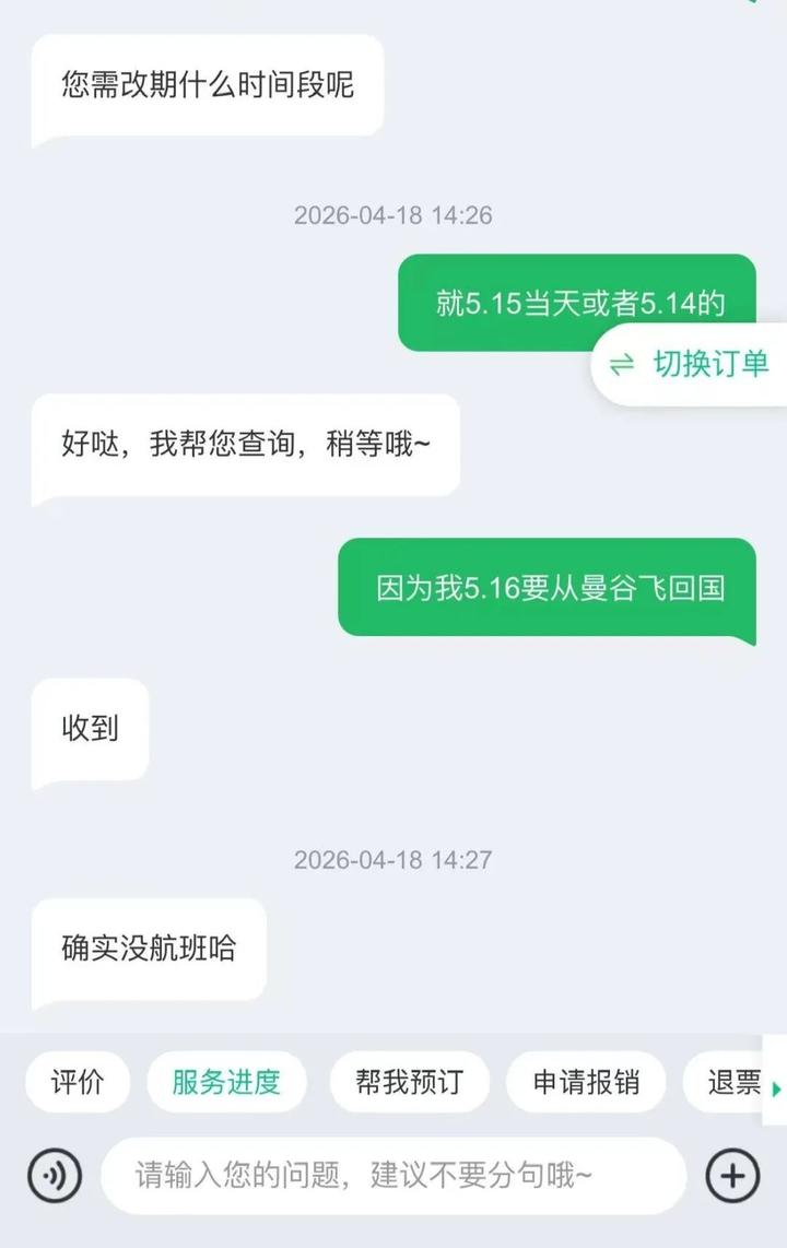 姜先生对这个方案并不认可,如果重新购买同一天的其他航班,即便转机也需要多花七百余元,直飞差价更是高达两三千元,还可能打乱其早已规划好的行程。