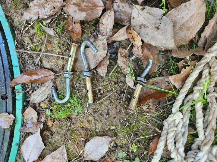 萧先生称防坠网形同虚设,他徒手就能将原本需要被固定在混凝土中的膨胀螺丝扯出来