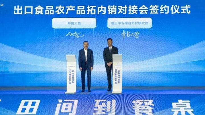 "外贸优品中华行"系列活动——出口食品农产品拓内销对接会同步开展。深度数科集团董事长全传晓现场主题分享,系统拆解中国大集作为第四方数字贸易服务平台的实践路径。平台搭建产业带数字化底座,构建"全域分销+产业带协同"通路,实现企业"零边际成本"接入全国分销网络;创新"数据+订单融资"产融协同,联合金融机构提供高效服务,破解企业支付融资难题,为出口食品农产品企业开拓国内市场提供可落地的数字化方案 。中国大集与临沂市沂南县苏村镇政府签署战略合作协议,双方将围绕苏村农产品产业带数字化升级、全渠道销售深度协作,共建"苏村农产品数字化示范样板",探索"产地直采+平台分销"新模式,助力沂南优质农产品走出山东、卖向全国。