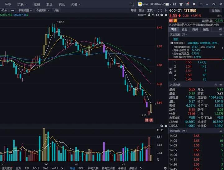 4月21日,此次业绩预告发布前,*ST华嵘股票涨停收盘,报5.55元/股,总市值约10.86亿元。